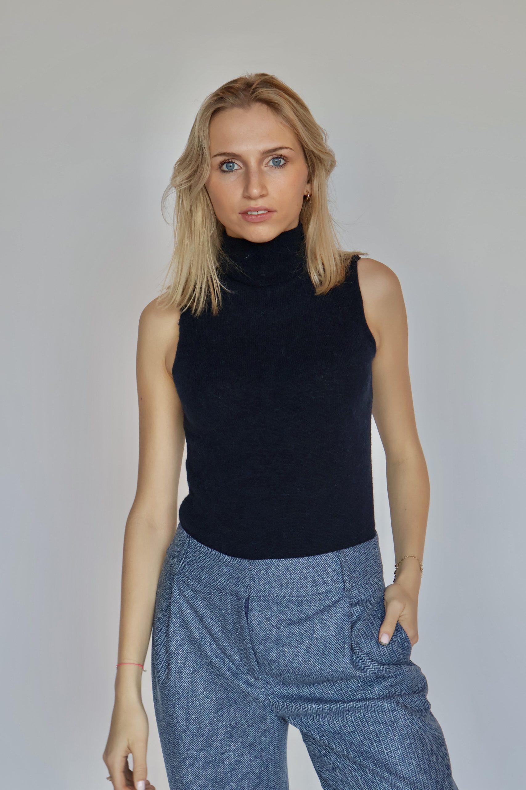 Caramel turtleneck top blue